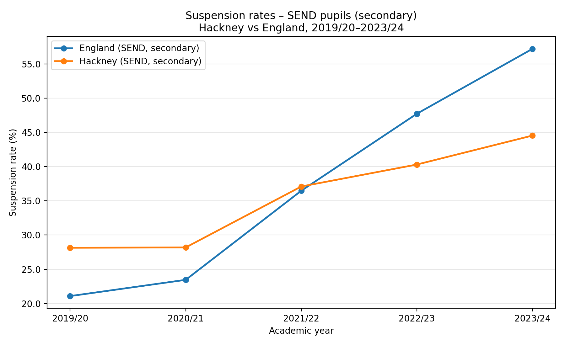 One possibility is that they meant to say “children and young people with EHCPs” (Education, Health and Care Plans), not “with SEND”. The exclusion rate for these pupils in Hackney secondary schools is higher than average. However, in the school context, “SEND” refers to all pupils on the SEND register. While the apparently incorrect empirical claims could be based on a mistaken interpretation of the figures, it is reasonable to assume that inspectors should not redefine SEND unilaterally.